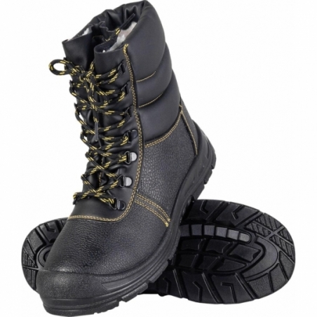 RAW-POL BRYES‑TWO‑OB to ocieplane buty zawodowe typu kozak, wykonane ze skóry bydlęcej. Zakrywają kostkę oraz część łydki, posiadają ocieplenie kożuszkiem i gumowe oblanie czubka chroniące przed ścieraniem. Wyposażone w podeszwę poliuretanową antypoślizgową i olejoodporną, zapewniają absorpcję uderzeń pod piętą. Spełniają wymagania kategorii OB E FO SRC.