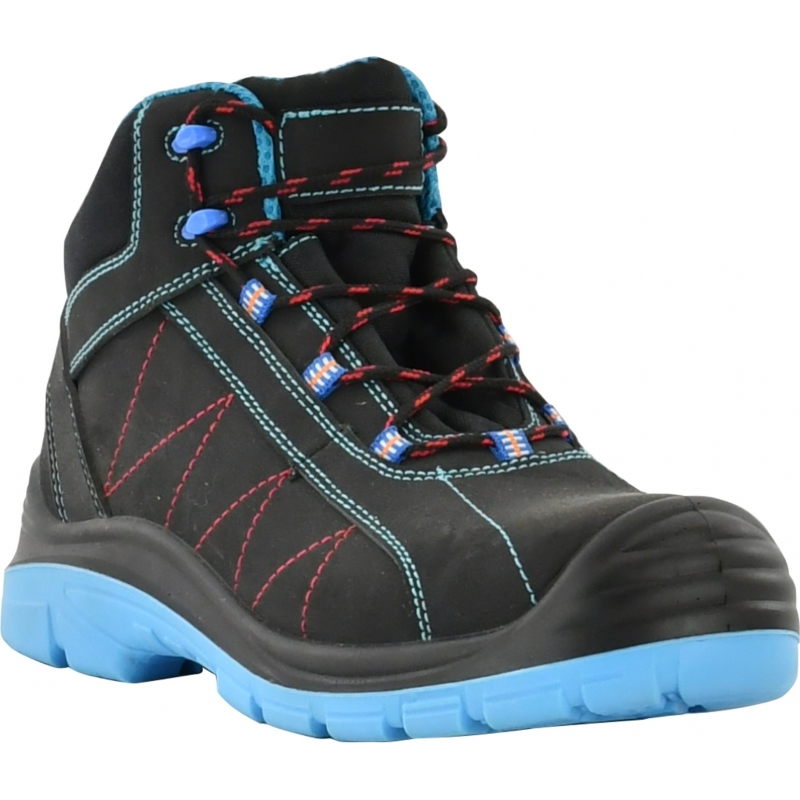 Trzewiki bezpieczne mają cholewkę wykonaną z nubuck active leather, która odprowadza wilgoć. Podeszwa PU/TPU jest olejoodporna, antypoślizgowa i antystatyczna. Posiadają kompozytowy podnosek i kevlarową wkładkę antyprzebiciową.