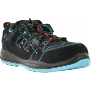 Sandały bezpieczne mają cholewkę wykonaną ze szlifowanej skóry bydlęcej, welurowej. Podeszwa wykonana z podwójnej warstwy PU, jest olejoodporna, antypoślizgowa i antystatyczna. Bardzo lekkie i wygodne. Podszewka to oddychająca, niebieska tkanina mesh. Wkładka anatomicznie ukształtowana z lekkiej pianki. Mają właściwości ESD. Posiadają podnosek kompozytowy.