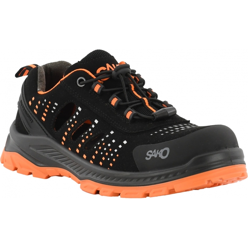 Sandały bezpieczne mają cholewkę wykonaną z mikrofibry z podparciem pięty TPU ,posiadają laminowany nosek. Podszewka wykonana z włókniny i siatki warstwowej ,która zapewnia wysoką oddychalność obuwia. Podeszwa z podwójnej warstwy PU jest olejoodporna, antypoślizgowa, antystatyczna i samoczyszcząca. Wyjmowana wkładka z pianki o wysokiej elastyczności. Sandały mają kompozytowy podnosek i kompozytową wkładkę antyprzebiciową. Bardzo lekkie i wygodne, posiadają właściwości ESD. Nie zawierają elementów metalowych.