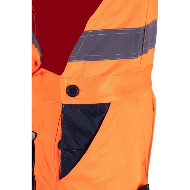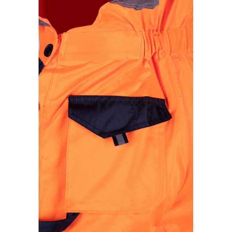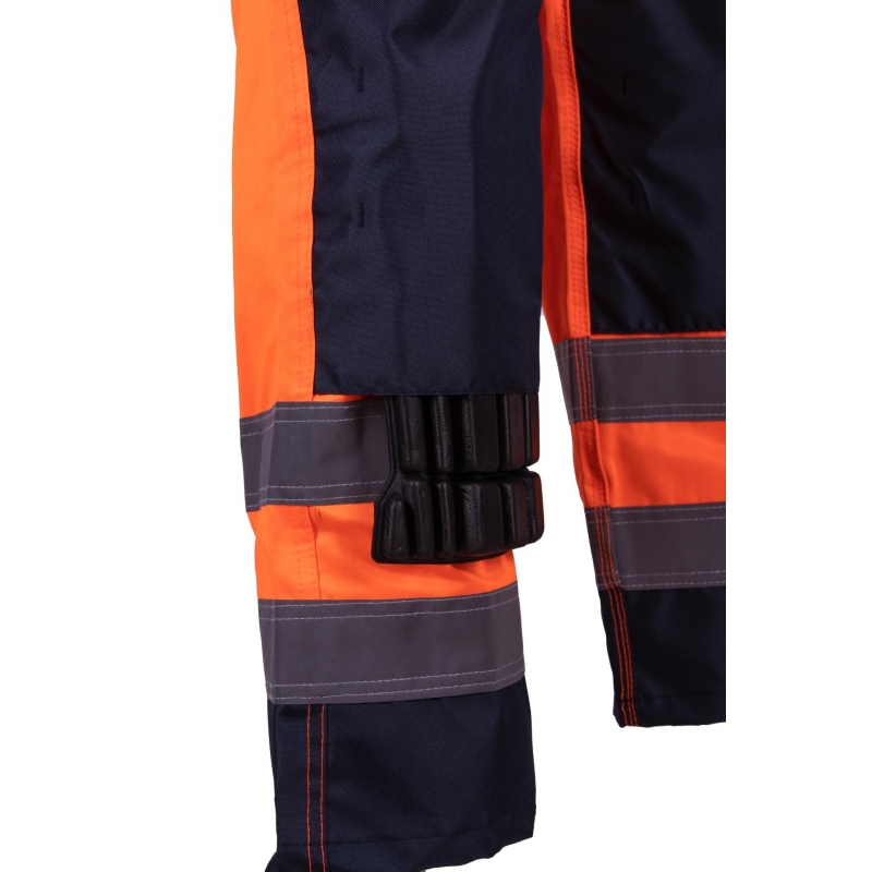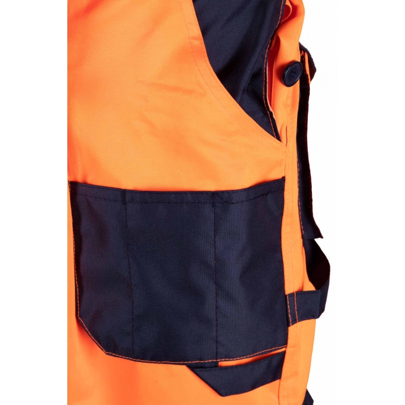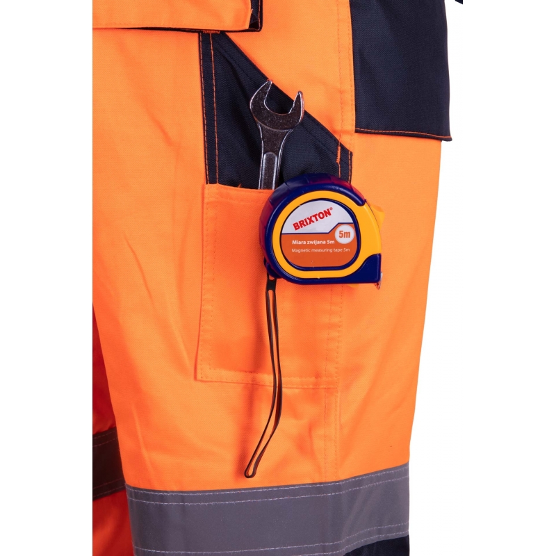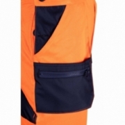 .Kieszenie: kieszeń na dokumenty zapinana na zamek, kieszeń na miarkę „metrówkę”, wzmocnione kieszenie zapinane na rzepy, wzmocnione kieszenie boczne, kieszeń na komórkę, dwie kieszenie boczne, ergonomiczna kieszeń na nakolanniki wykonana z OXFORDU, dwie kieszenie w tylnej części spodni, zapinane na rzepy,