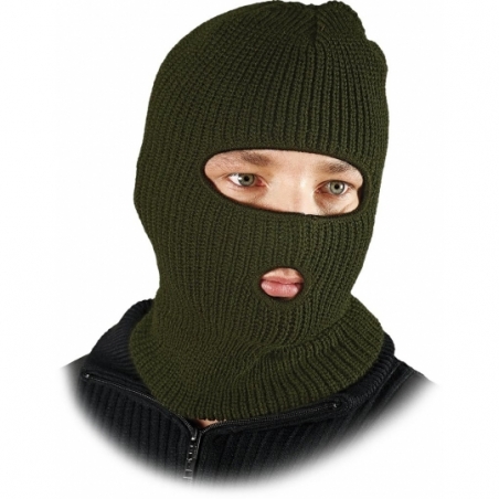Czapka kominiarka z dwoma otworami na usta i oczy. - 100% przędza akrylowa - doskonale chroni przed zimnem - zakrywa szczególnie narażone na wiatr i mróz policzki oraz nos