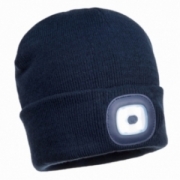 - Ciepła i komfortowa czapka akrylowa. Posiada wyjmowalną lampkę LED zapewniającą lepszą widoczność. Lampka LED może być ładowana przez port USB.