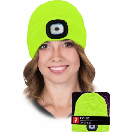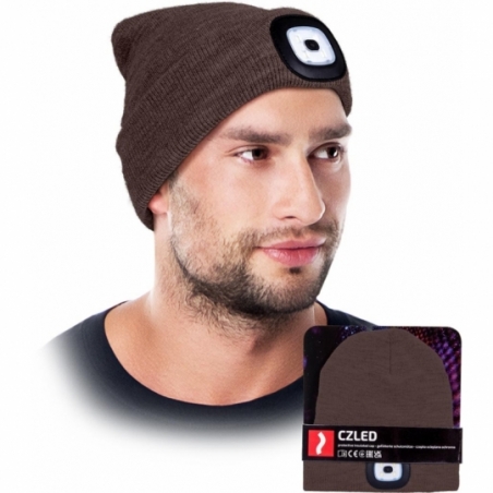 Czapka zimowa LED z latarką. - 100% przędza akrylowa - podszewka 100% poliester - podwójna warstwa materiału lepiej chroni przed zimnem - od wewnętrz ocieplana polarem - na przodzie czapki znajduje się wyjmowana latarka LED ładowana za pomocą złącza USB - obudowa latarki wykonana z miękkiej gumy, która nie przeszakdza w użytkowaniu czapki - latarka posiada trzystopniową regulację świecenia - sprawdza się nie tylko zimą, ale również późną jesienią czy też wczesną wiosną - każda sztuka posiada torebkę oraz zawieszkę, które umożliwiają wygodną prezentację na wystawie - spełnia wymagania normy EN ISO 13688 - zgodna z Dyrektywą Parlamentu Europejskiego i Rady 2014/30/UE (EMC - Kompatybilność Elektromagnetyczna) oraz 2011/65/EU (RoHS - Ograniczenie Stosowania Substancji Niebezpiecznych)