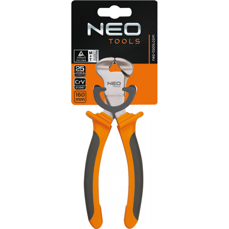 Szczypce czołowe 160 mm, twardość powierzchni tnących 55-60 HRc, krawędzie cięcia hartowane indukcyjnie, DIN 5748, uchwyt dwumateriałowy, TÜV