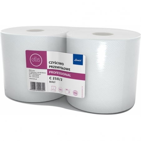 Czyściwo przemysłowe. - 100 % celulozy - wytrzymałe, dwuwarstwowe o wysokiej absorbcji płynów - gramatura 18 g/m2 - pochłania wszelkie płyny, może służyć do wycierania i czyszczenia różnych powierzchni - długość 240 metrów, szerokość wstęgi 26 cm - opakowanie zawiera 2 role czyściwa