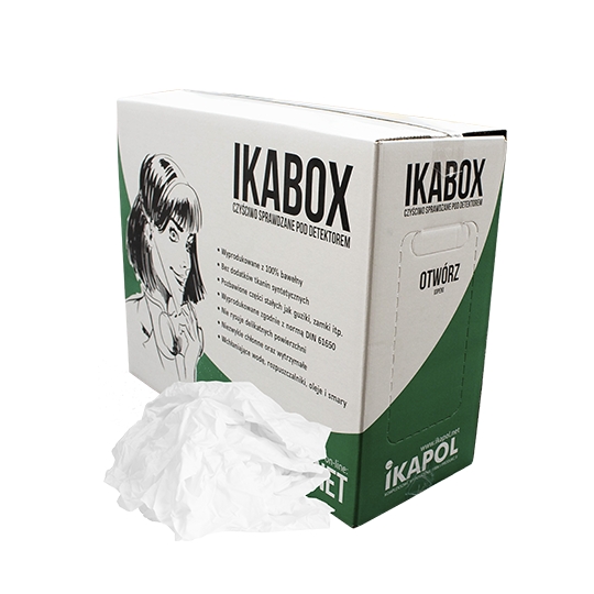 Ścierki spełniają wysokie wymagania stawiane dla pracy w ciężkich warunkach. Opracowane do czyszczenia oraz wycierania plam z oleju, tłuszczu lub płynów chłodząco-smarujących. Nie pylą i nie mechacą się. Wysoka zdolność absorpcji. Ikabox jest ekonomiczną ścierką o szerokim polu zastosowań.