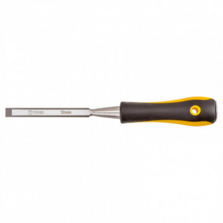 Dłuto do drewna, szerokość ostrza 12 mm, ostrze ze stali CrV, dwumateriałowy uchwyt, wzmocnienie do pobijania