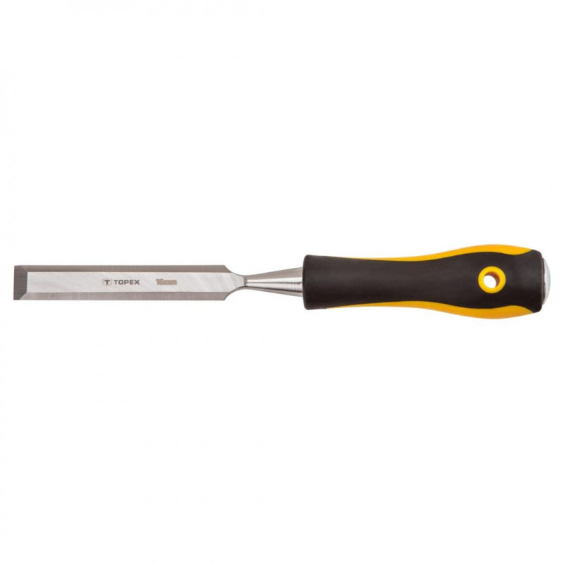 Dłuto do drewna, szerokość ostrza 16 mm, ostrze ze stali CrV, dwumateriałowy uchwyt, wzmocnienie do pobijania