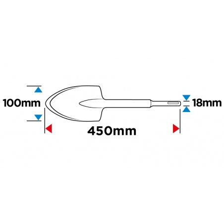 Dłuto SDS Max łopatkowe, szerokość 100 mm, średnica trzpienia 18 mm, długość 450 mm