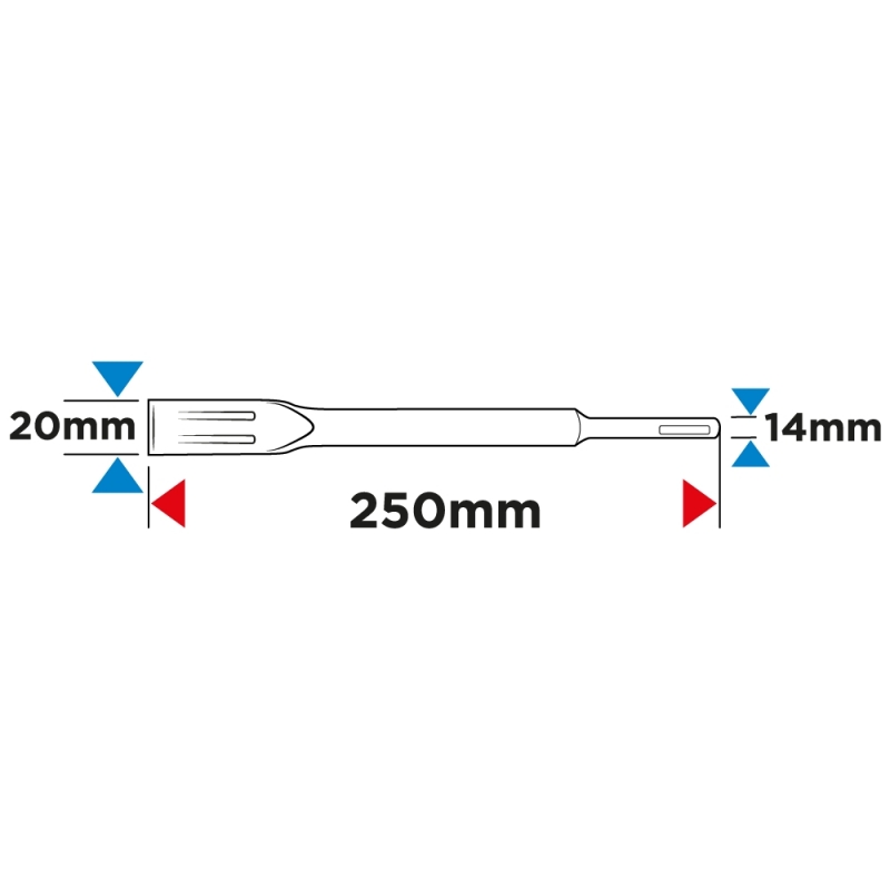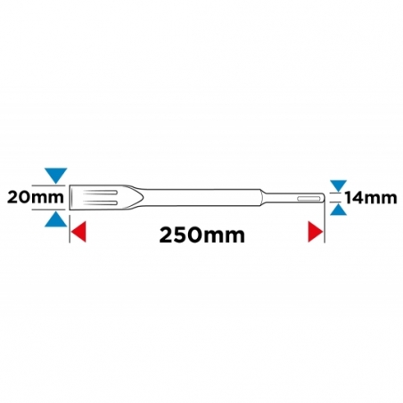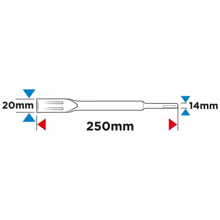 Dłuto SDS Plus płaskie samoostrzące, szerokość 20 mm, średnica trzpienia 14 mm, długość 250 mm