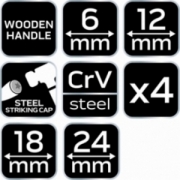 Dłuto do drewna, szerokość ostrza 25 mm, ostrze ze stali CrV, drewniany uchwyt, wzmocnienie do pobijania