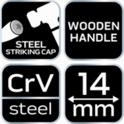 Dłuto do drewna, szerokość ostrza 14 mm, ostrze ze stali CrV, drewniany uchwyt, wzmocnienie do pobijania