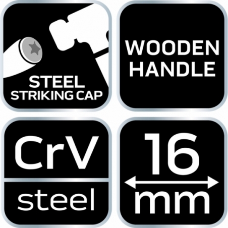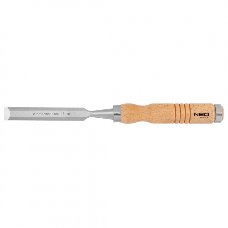 Dłuto do drewna, szerokość ostrza 16 mm, ostrze ze stali CrV, drewniany uchwyt, wzmocnienie do pobijania