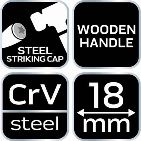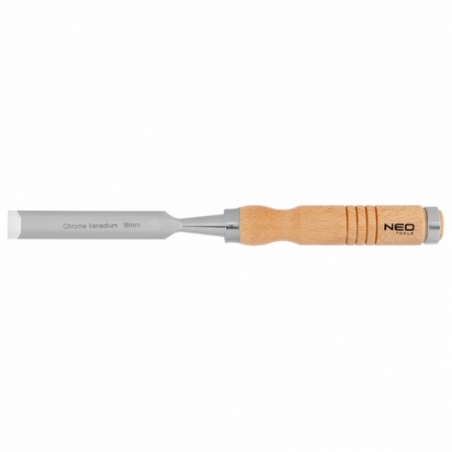 Dłuto do drewna, szerokość ostrza 18 mm, ostrze ze stali CrV, drewniany uchwyt, wzmocnienie do pobijania