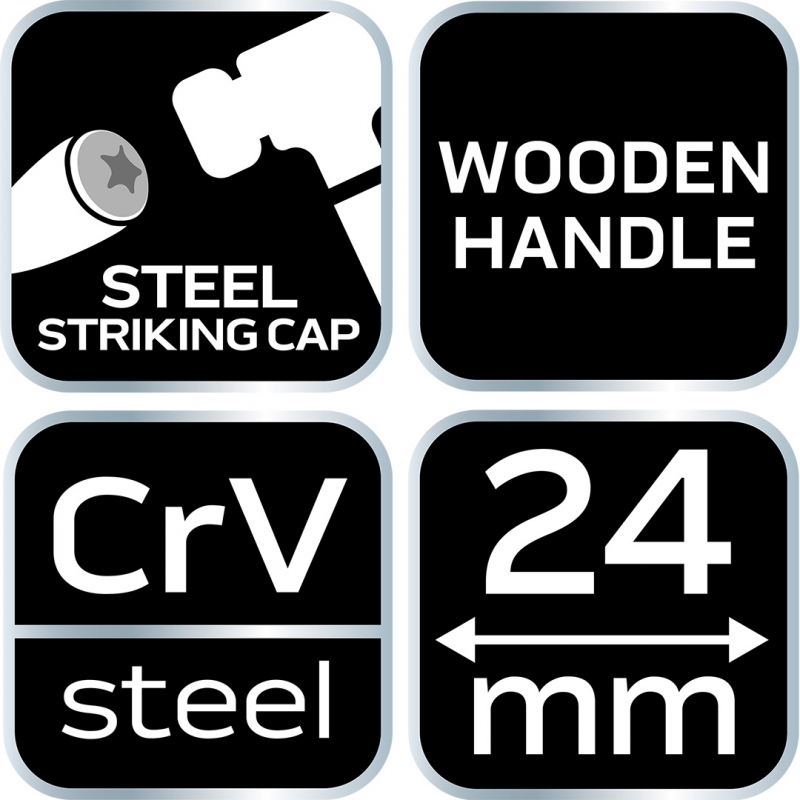 Dłuto do drewna, szerokość ostrza 24 mm, ostrze ze stali CrV, drewniany uchwyt, wzmocnienie do pobijania