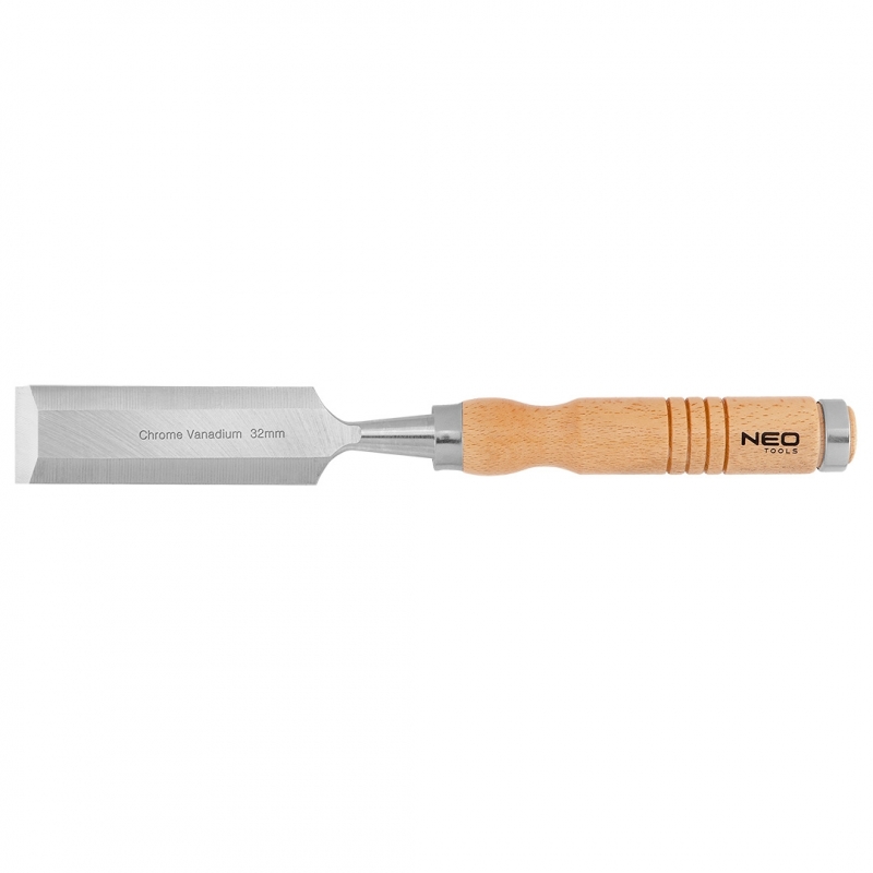 Dłuto do drewna, szerokość ostrza 32 mm, ostrze ze stali CrV, drewniany uchwyt, wzmocnienie do pobijania