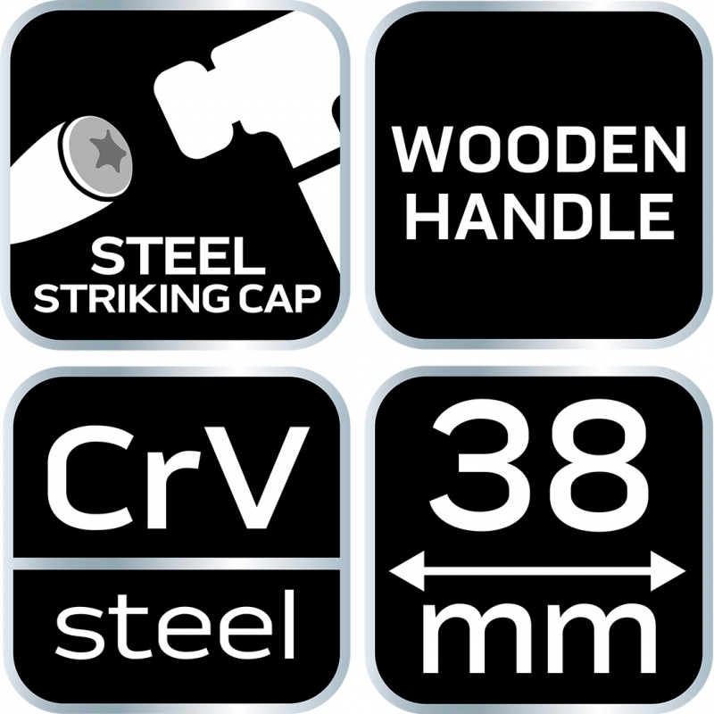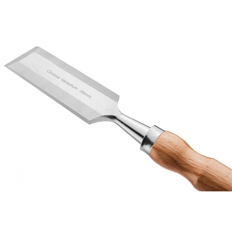 Dłuto do drewna, szerokość ostrza 38 mm, ostrze ze stali CrV, drewniany uchwyt, wzmocnienie do pobijania