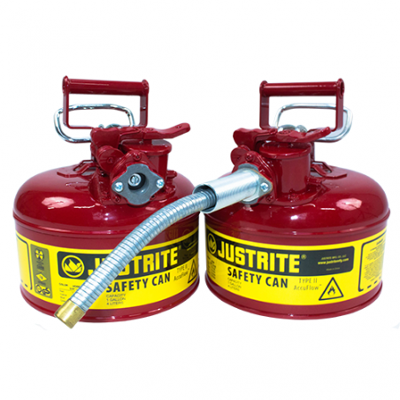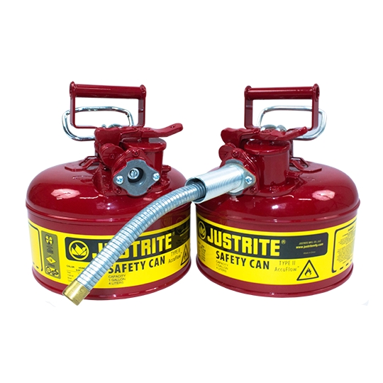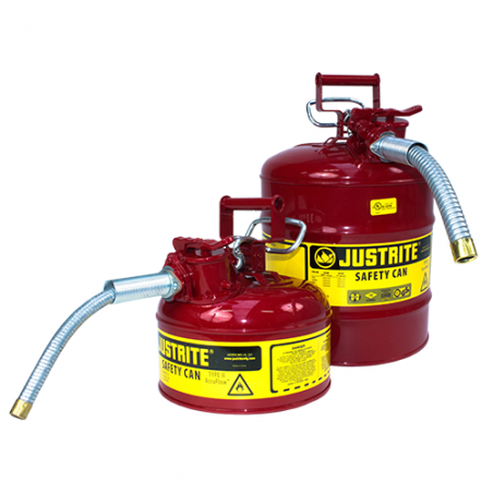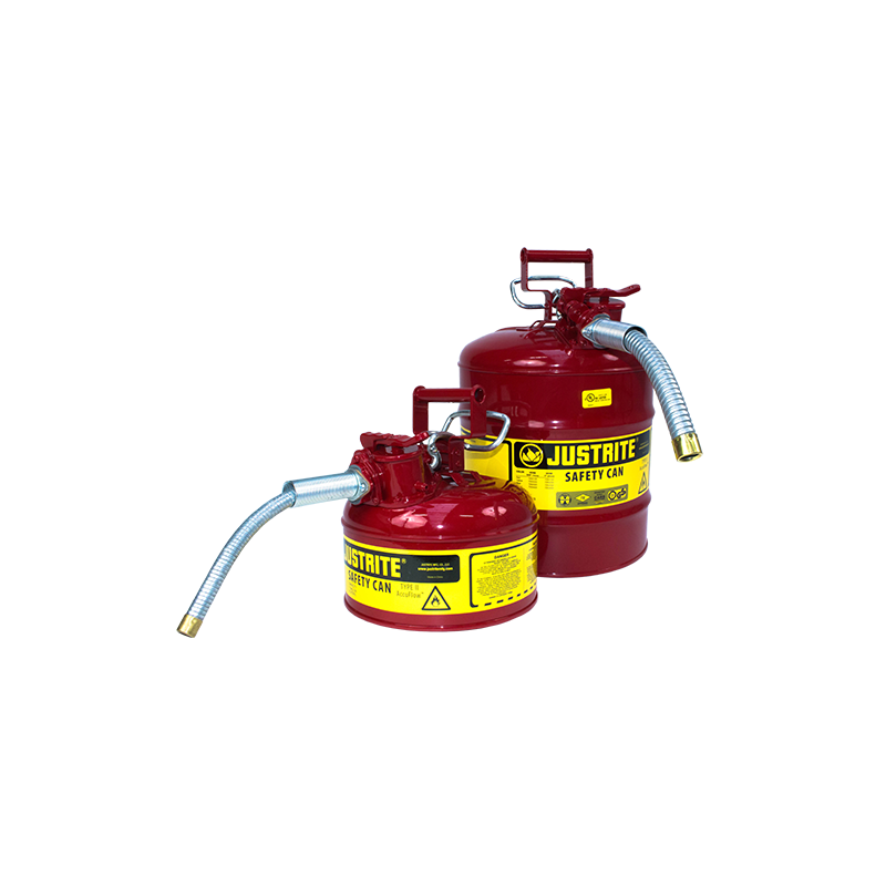 Pojemnik wyposażony w przechylany uchwyt, dzięki czemu ułatwione jest dozowanie i manipulacja pojemnikiem. Samozamykający się, szczelny korek zabezpiecza przed wydostawaniem się oparów, rozlaniem i wyciekaniem substancji. Pojemnik do magazynowania płynów łatwopalnych wyposażone są w pułapkę przeciwogniową o podwójnej gęstości siatki, której zadaniem jest rozpraszanie ciepła, a co za tym idzie samozapłonowi płynu w pojemniku. Wbudowany zawór odpowietrzający chroni przed rozlewaniem i wybuchem pojemnika przy zwiększonej temperaturze. Zawór otwiera się przy podwyższonej temperaturze, przy nadciśnieniu wewnątrz wynoszącym od 0,2 do 0,35 bara. Pojemnik wykonany z odpornej stali, pokryty powłoką lakierniczą wykonaną z trwałego lakieru proszkowego, która odporna jest na chemikalia i otarcia.