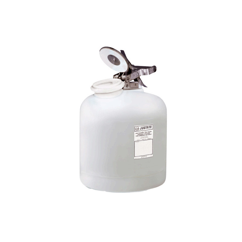 Pojemnik do cieczy żrących (bez ochrony przed płomieniami). Zrobiony ze szczelnego polietylenu, specjalnie skonstruowanego, odpornego na silne kwasy i żrące ciecze. Dodatkowym zabezpieczeniem jest szczelna pokrywa. Owalny pojemnik może zawierać maksymalną ilość cieczy, a opróżnianie przy pomocy rączki ze spustem jest proste. Pojemnik odporny na zniszczenia mechaniczne i co ważne nie ulega stłuczeniu. Każdy pojemnik posiada 10 letnią gwarancję.