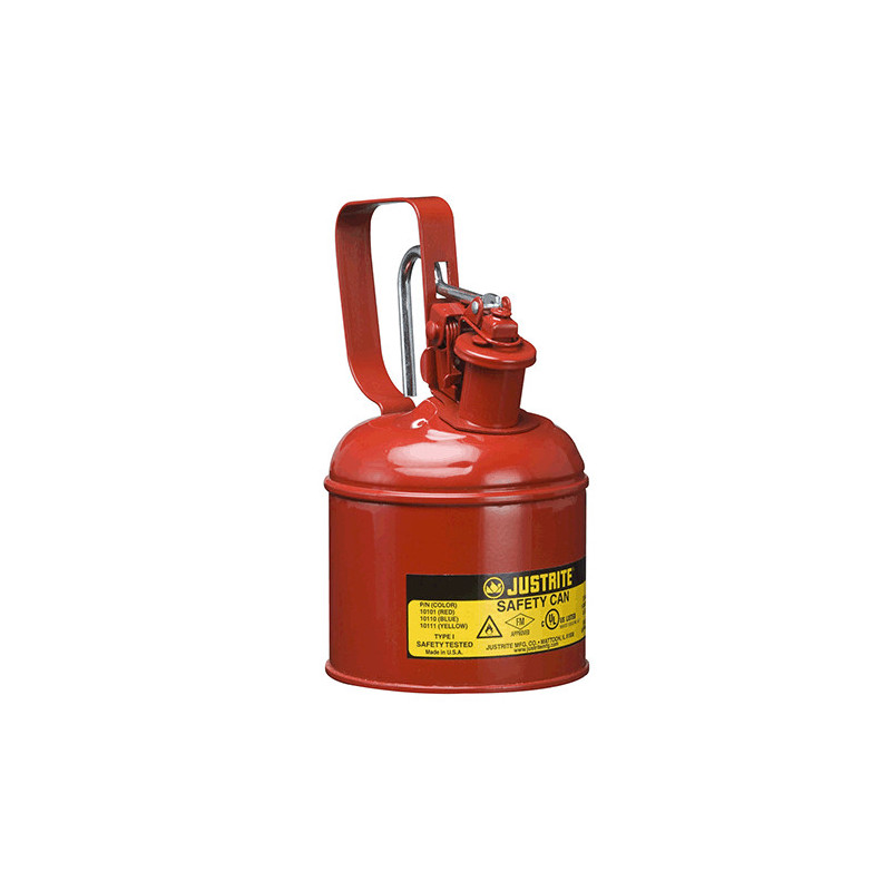 Pojemnik w kolorze czerwonym w celu uwidocznienia miejsca przechowywania substancji łatwopalnych. W razie pożaru kolor czerwony wskazuje strażakom na miejsce gdzie znajduje się substancja łatwopalna. Pojemnik wyposażony w przechylany uchwyt dzięki czemu ułatwione jest dozowanie i manipulacja pojemnikiem. Samozamykający się, szczelny korek zabezpiecza przed wydostawaniem się oparów, rozlaniem i wyciekaniem substancji. Pojemnik do magazynowania płynów łatwopalnych wyposażone są w pułapkę przeciwogniową o podwójnej gęstości siatki, której zadaniem jest rozpraszanie ciepła, a co za tym idzie samozapłonowi płynu w pojemniku. Wbudowany zawór odpowietrzający chroni przed rozlewaniem i wybuchem pojemnika przy zwiększonej temperaturze. Zawór otwiera się przy podwyższonej temperaturze, przy nadciśnieniu wewnątrz wynoszącym od 0,2 do 0,35 bara. Pojemnik wykonany z odpornej stali, pokryty powłoką lakierniczą wykonaną z trwałego lakieru proszkowego, która odporna jest na chemikalia i otarcia.