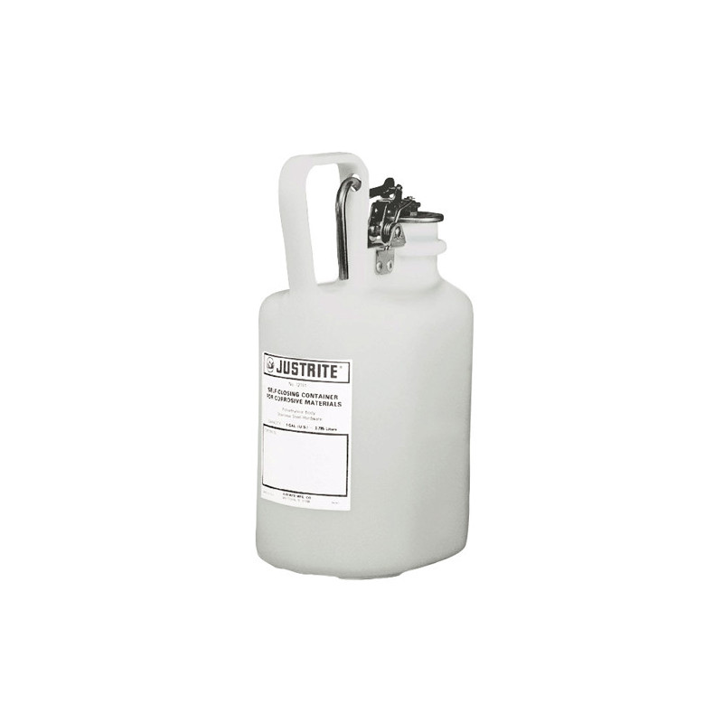 Pojemnik do cieczy żrących (bez ochrony przed płomieniami). Zrobiony ze szczelnego polietylenu, specjalnie skonstruowanego, odpornego na silne kwasy i żrące ciecze. Dodatkowym zabezpieczeniem jest szczelna pokrywa. Owalny pojemnik może zawierać maksymalną ilość cieczy, a opróżnianie przy pomocy rączki ze spustem jest proste. Pojemnik odporny na zniszczenia mechaniczne i co ważne nie ulega stłuczeniu. Każdy pojemnik posiada 10 letnią gwarancję.