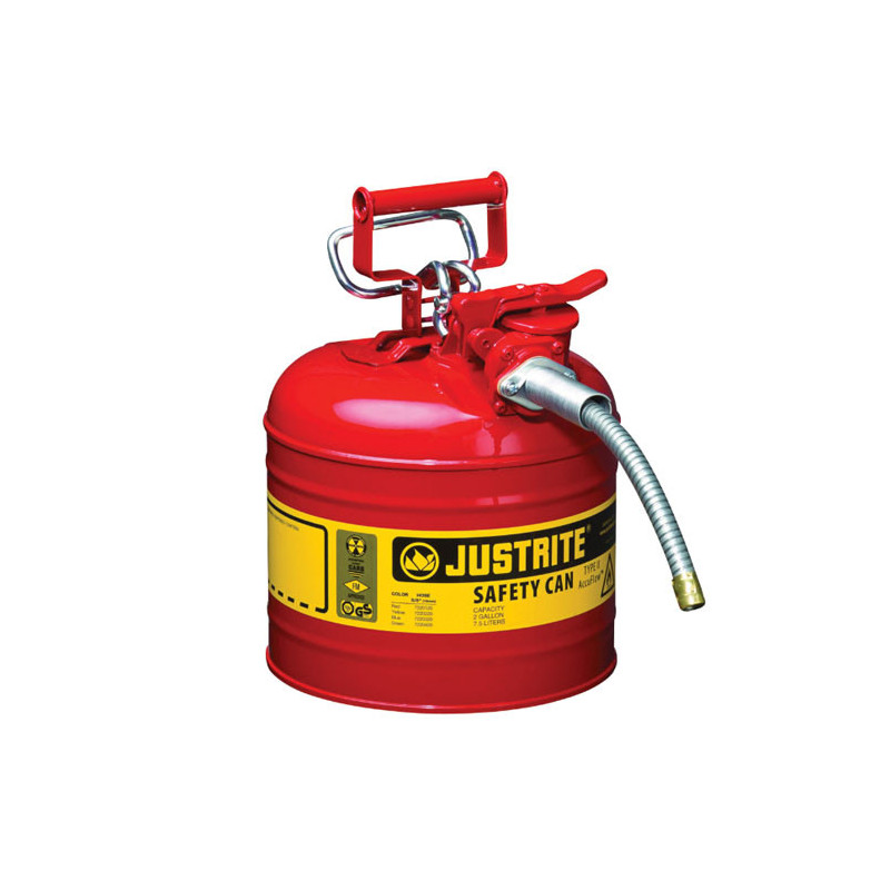 Pojemnik do bezpiecznego przechowywania płynów łatwopalnych. System Safe-Squeeze umożliwia łatwe dozowanie płynów. Nowoczesnym rozwiązaniem jest zastosowanie dźwigni. Pojemnik można otworzyć tylko prze jej naciśniecie i po zdjęciu ręki z dźwigni korek zamyka się automatycznie. Takie rozwiązanie gwarantuje, że pracownik nigdy nie zapomni o zakręceniu pojemnika, a co za tym idzie podwyższa bezpieczeństwo pracy. Metalowy, elastyczny wężyk pozwala na dozowanie płynów do najtrudniej dostępnych miejsc, chroniąc tym samym miejsce pracy przed zabrudzeniem i niepotrzebnym rozlewaniem płynów.