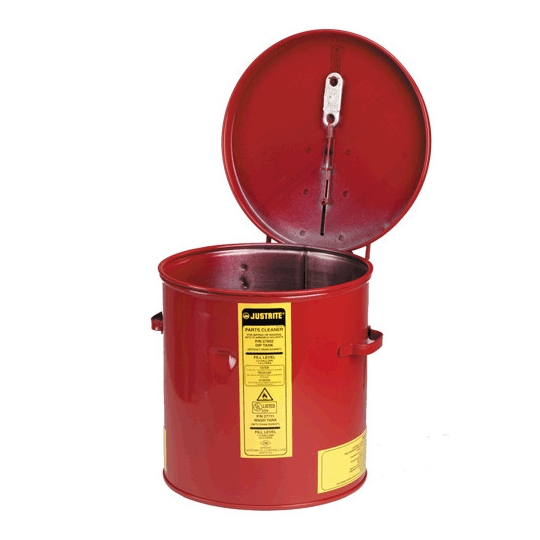Pojemniki Justrite do mycia i czyszczenia małych podzespołów w miejscu pracy. Pojemniki te stosuje się wszędzie tam gdzie jest konieczność mycia małych elementów bez opuszczania miejsca pracy np. przy linii produkcyjnej.
