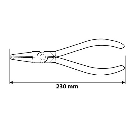 Szczypce do pierścieni osadczych 230 mm, wewnętrzne, wygięte, do pierścieni 40-100 mm, średnica końcówki 2.3 mm, stal CrV, TÜV