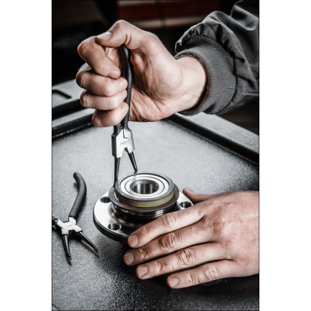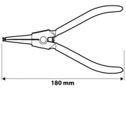 Szczypce do pierścieni osadczych 180 mm, zewnętrzne, proste, do pierścieni 19-60 mm, średnica końcówki 1.8 mm, stal CrV, TÜV