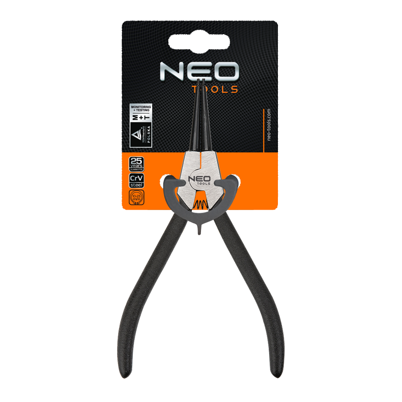 Szczypce do pierścieni osadczych 140 mm, zewnętrzne, proste, do pierścieni 10-25 mm, średnica końcówki 1.3 mm, stal CrV, TÜV