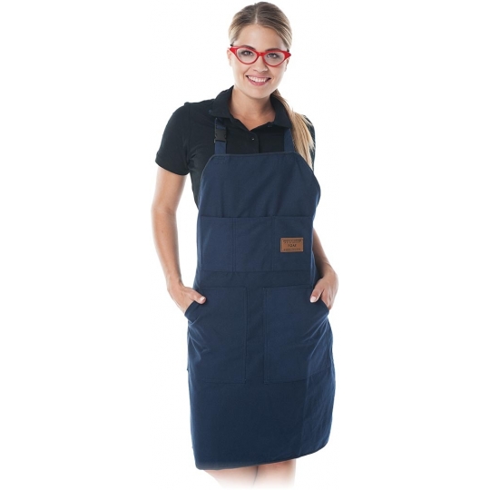 Fartuch ochronny przedni damski. - 100% bawełny typu canvas - gramatura 300 g/m2 - wymiar: 85x60 cm - wiązany z tyłu na pasek dzięki czemu możliwe jest lepsze dopasowanie fartucha do sylwetki - na szyi zapinany na klamrę z możliwością regulacji długości - dwie boczne kieszenie oraz dodatkowa kieszeń w górnej partii - idealny do prac w ogrodzie