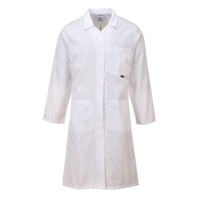 - Stylowy praktyczny i bardzo wygodny fartuch damski z zapięciem na napy ukrytymi pod listwą. Posiada jedną kieszeń na klatce piersiowej oraz dwie kieszenie boczne.