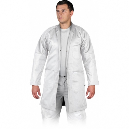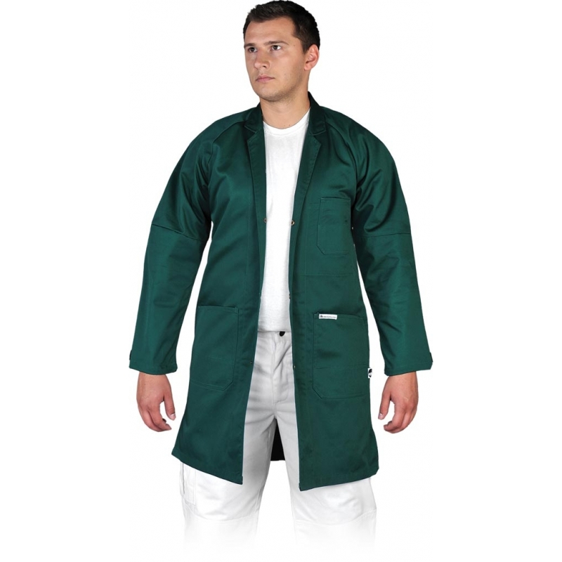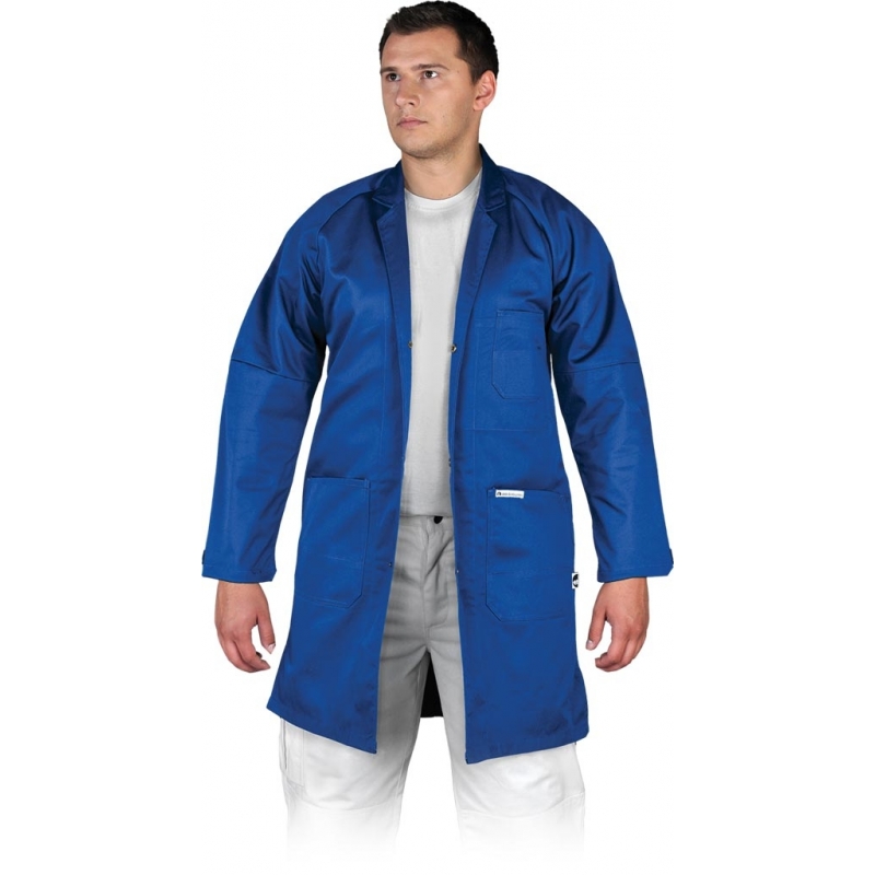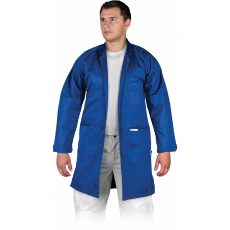 Fartuch ochronny. - 65% poliester, 35% bawełna - gramatura 270 g/m2 - technologia High Technology Fabric zapewnia wytrzymałość i odporność na wytarcia - zapinany na napy - w partii pasa z tyłu fartucha pasek z tego samego materiału - dwie kieszenie w dolnej partii oraz jedna w górnej - dodatkowa kieszeń po prawej stronie od wewnątrz - rękawy zapinane na rzep