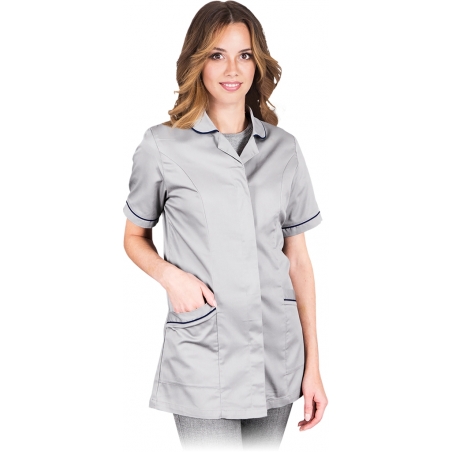 RAW-POL LH-LISA to damski fartuch ochronny z serii LH, zapinany na guziki kryte plisą i wykończony kołnierzykiem. Wyposażony w siateczkowe wstawki dla lepszej wentylacji, krótki rękaw, dwie kieszenie w dolnej części oraz niewielkie rozporki po bokach. System wentylacji na plecach zwiększa komfort użytkowania, a fason REGULAR sprawia, że produkt jest wygodny podczas pracy.