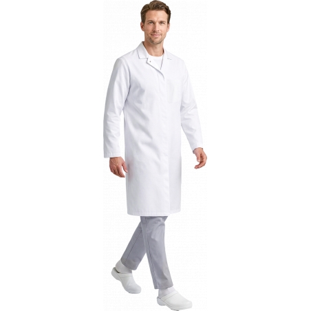 RAW-POL LH‑FOOD+CME to męski fartuch ochronny przeznaczony do pracy w przemyśle spożywczym. Wykonany z trwałej tkaniny poliestrowo‑bawełnianej o gramaturze 250 g/m², zapewnia odporność na intensywne użytkowanie oraz komfort noszenia. Wyposażony w zatrzaski, kołnierzyk i wewnętrzną kieszeń. Przystosowany do prania przemysłowego w temperaturze do 95°C i zgodny z wymaganiami systemu HACCP.