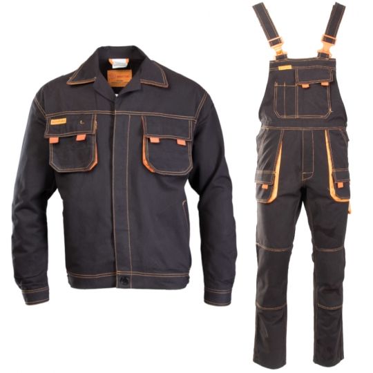 Ubranie robocze Brixton Spark, w skład którego wchodzą bluza i spodnie ogrodniczki.