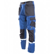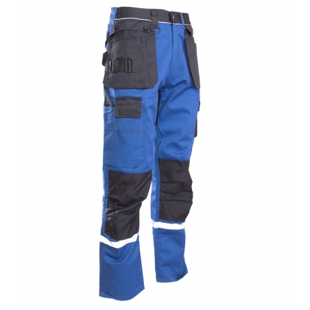 Budowa/szycie: kontrastowa lamówka, podwójne szwy, szyte mocną nicią, duża ilość ryglówek w miejscach szczególnie narażonych na rozprucie, spodnie posiadają szlufki na pasek, szlufka na młotek;