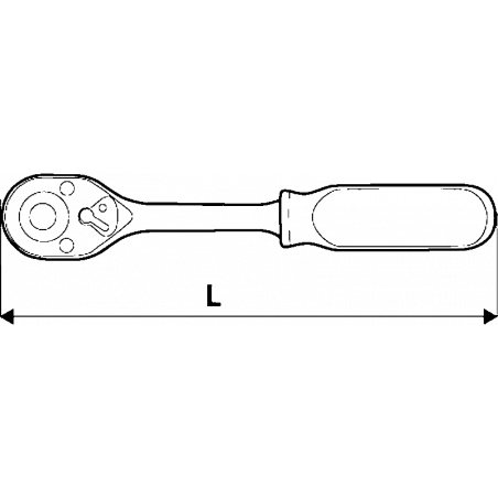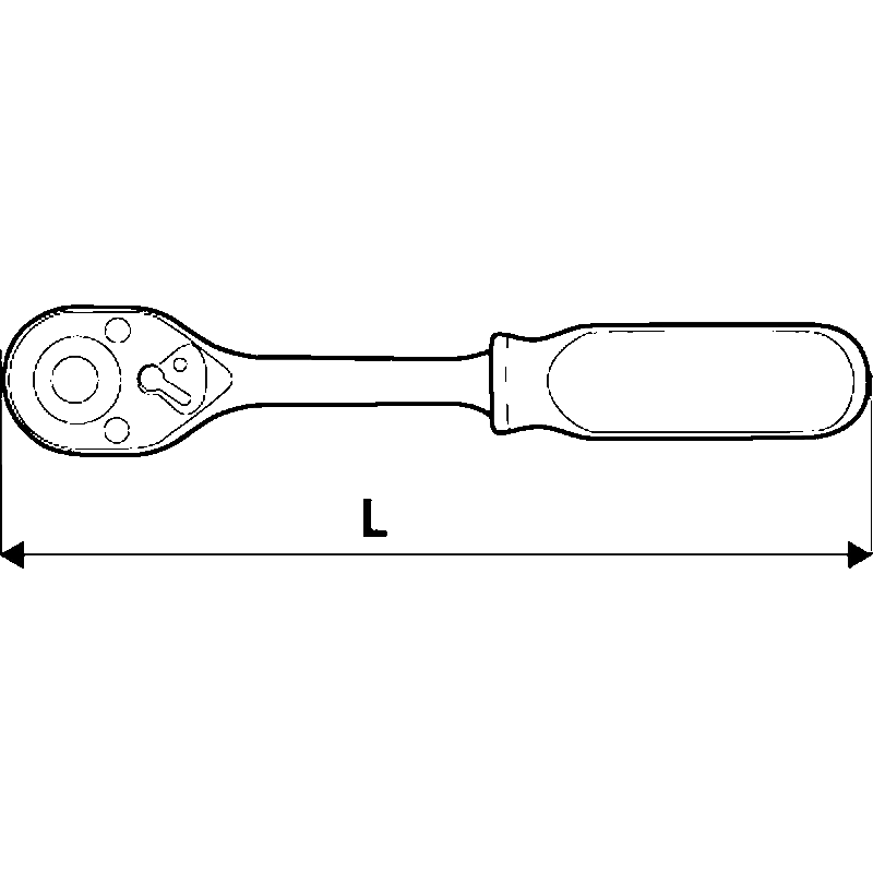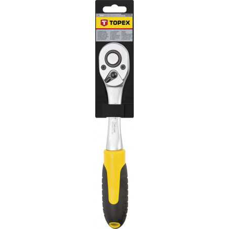 Grzechotka odgięta 1/2", 255 mm, stal CrV, mechanizm zapadkowy 72 zęby, przełącznik kierunku obrotów, dwumateriałowy uchwyt, DIN 3122
