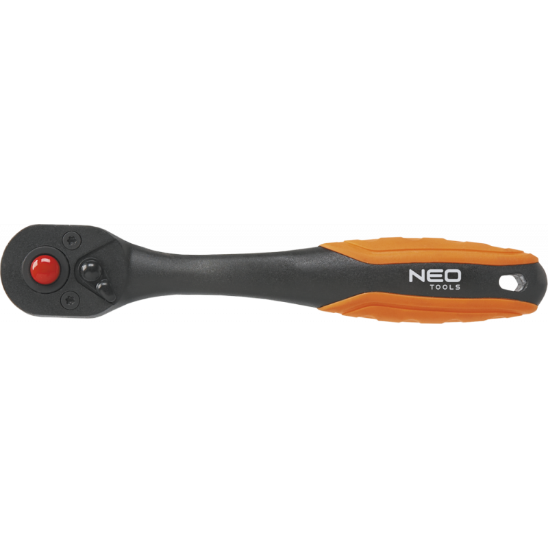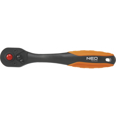 Grzechotka odgięta 1/2", 250 mm, korpus z kompozytu PP, mechanizm zapadkowy ze stali CrMo, 72 zęby, przełącznik kierunku obrotów, system blokowania i zwalniania nasadki, dwumateriałowy uchwyt, DIN3122, certyfikat TÜV M+T, 25 lat gwarancji