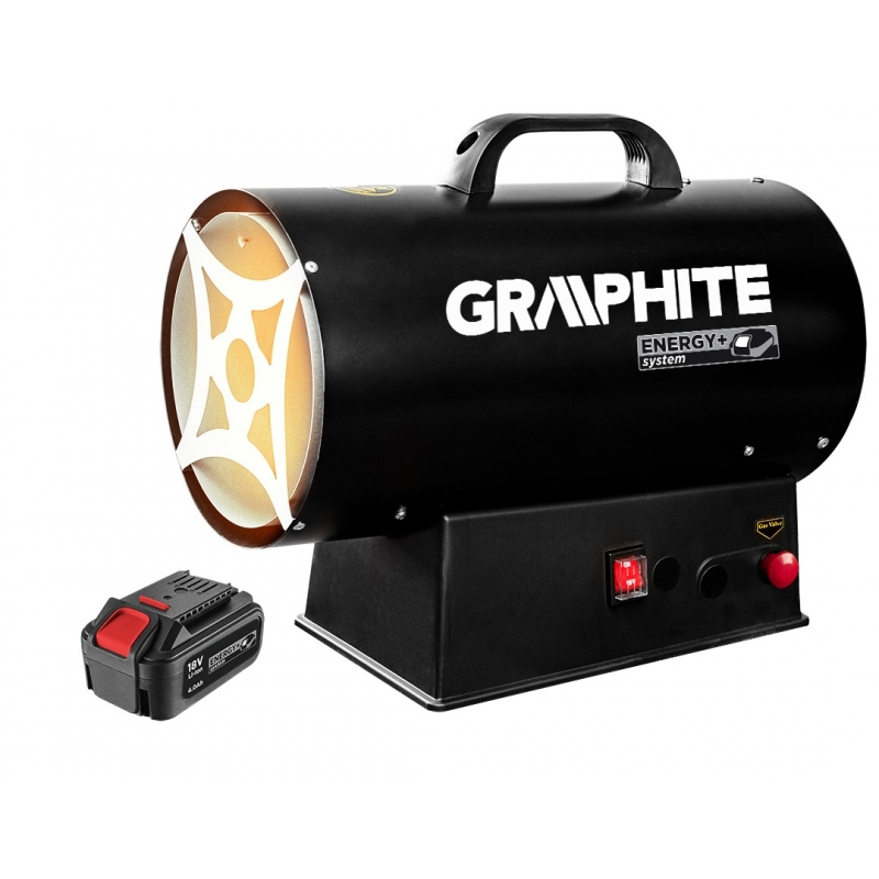 Nagrzewnica gazowa 15kW, ciśnienie 0,7 bar, zużycie paliwa 1,09 kg/h, przepływ powietrza 320 m3/h, reduktor ciśnienia, wąż 1,5m, zapłon piezo, wersja na akumulator 18V, bez akumulatora. Nagrzewnica działa z akumulatorami 58G001- 2,0Ah i 58G004 - 4,0Ah, nie pracuje z akumulatorem 6,0Ah.
