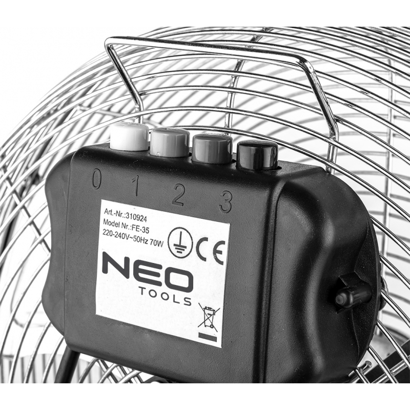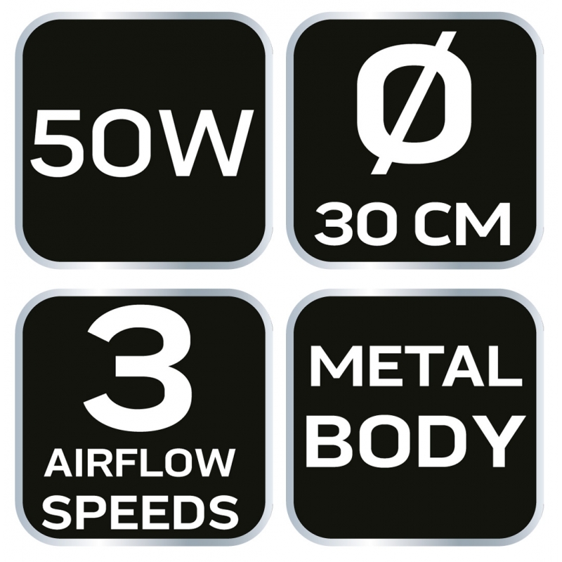 Wentylator podłogowy 50W, średnica 30 cm, metalowa chromowana obudowa, 3 prędkości nawiewu
