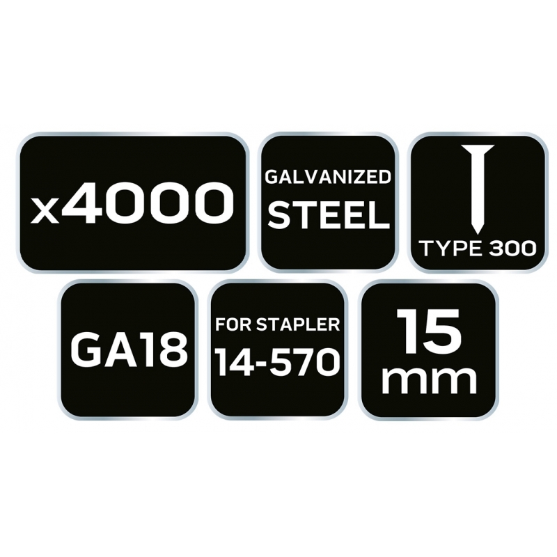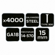 Gwoździe galwanizowane do zszywacza pneumatycznego (do modelu NEO 14-570), GA18, Typ 300 (F), długość 15 mm, 4000 szt.
