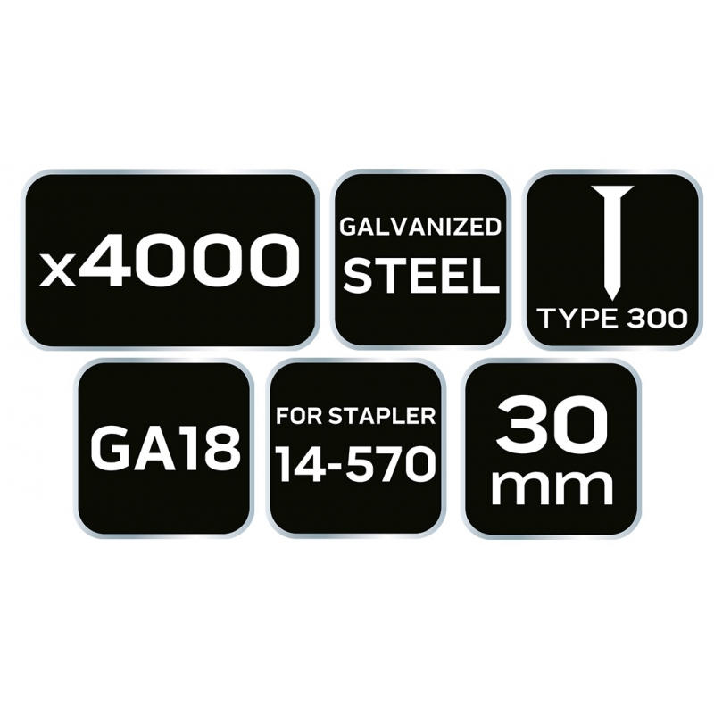 Gwoździe galwanizowane do zszywacza pneumatycznego (do modelu NEO 14-570), GA18, Typ 300 (F), długość 30 mm, 4000 szt.