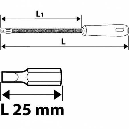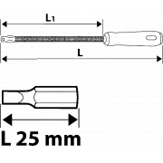 Wkrętak z giętkim grotem, zestaw 31 szt., dwumateriałowy uchwyt, końcówki: płaskie: 4, 5, 6, 7 mm, PZ1, PZ2, PZ3, T10, T15, T20, T30, PH1, PH2, PH3, H3, H4, H5, H6, H8, nasadki 4, 5, 6, 7, 8, 9, 10, 11, 12, 13, przejściówka kwadrat 1/4", sześciokąt - magnetyczna