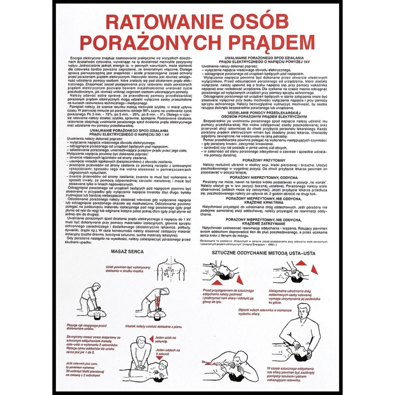 Instrukcja BHP „Ratowanie osób porażonych prądem”.