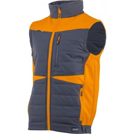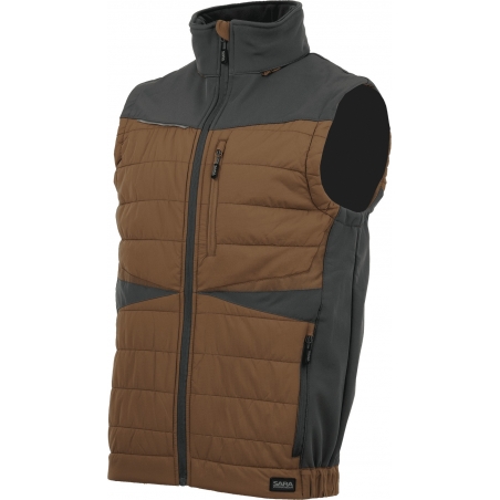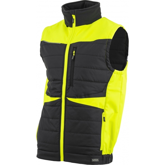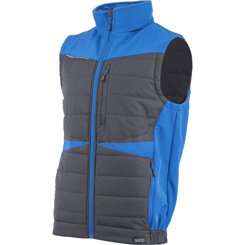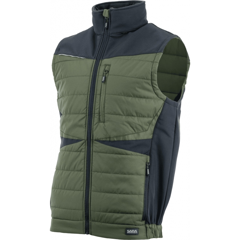 SARA 1-11-620 – Kamizelka hybrydowaComfort Plus — kamizelka hybrydowa łącząca pikowaną strukturę z softshellowymi wstawkami. Lekka, ciepła i funkcjonalna, z kapturem chowanym w kołnierzu oraz kieszeniami zapinanymi na zamek. Opis techniczny