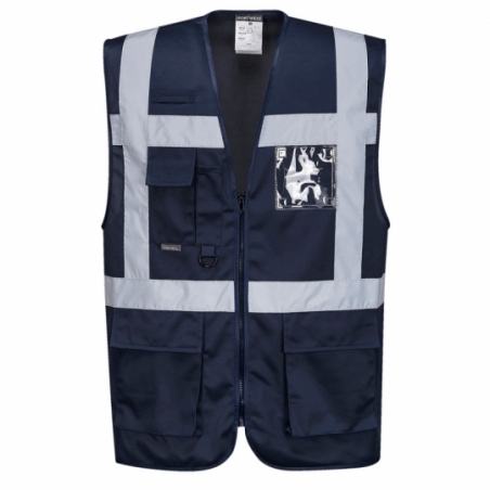• Kamizelka Executive oferowana w czterch kolorach. Posiada podwójne okienko na identyfikator zaczep na radiotelefon oraz liczne i obszerne wielofukcyjne kieszenie. Idealne uzupełnienie do odzieży korporacyjnej.