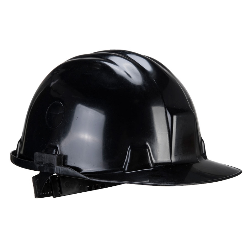 - Jest to nasz podstawowy przemysłowy hełm ochronny wykonany z bardzo mocnego polietylenu i posiadający sześciopunktową więźbę. Możliwość regulacji obwodu w zakresie od 54 cm do 62 cm. Posiada napotnik i standardowe otwory na akcesoria.