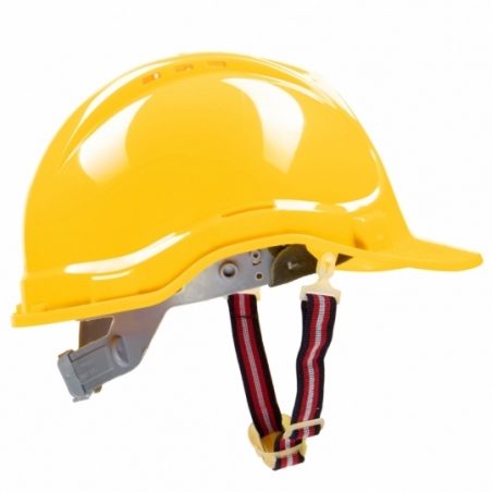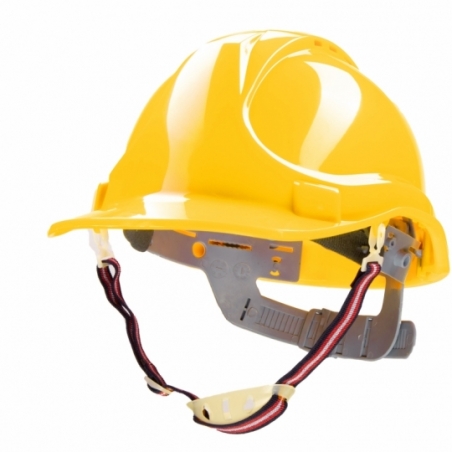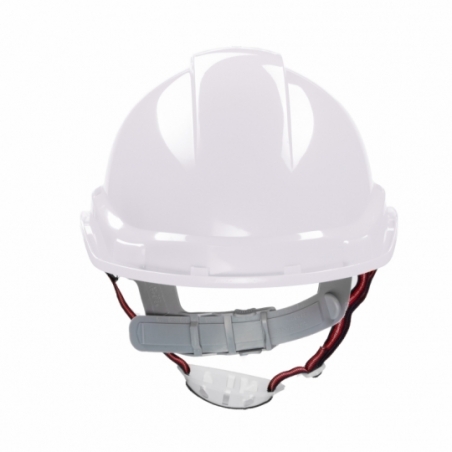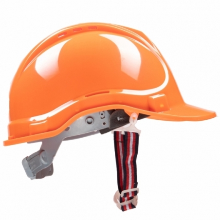 .Pasek stabilizujący hełm: dwupunktowy, wykonany z taśmy nylonowej z polietylenowym podbródkiem,